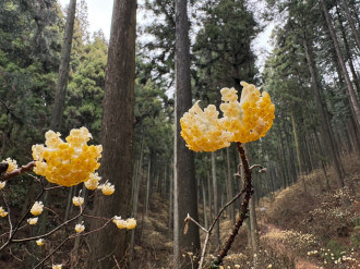 焼森山のミツマタは3〜4分咲きです。見頃は今週末となる見込みです。