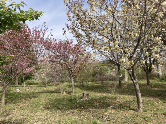 花の山ではヤエザクラ、ウコンザクラが見頃を迎えています。